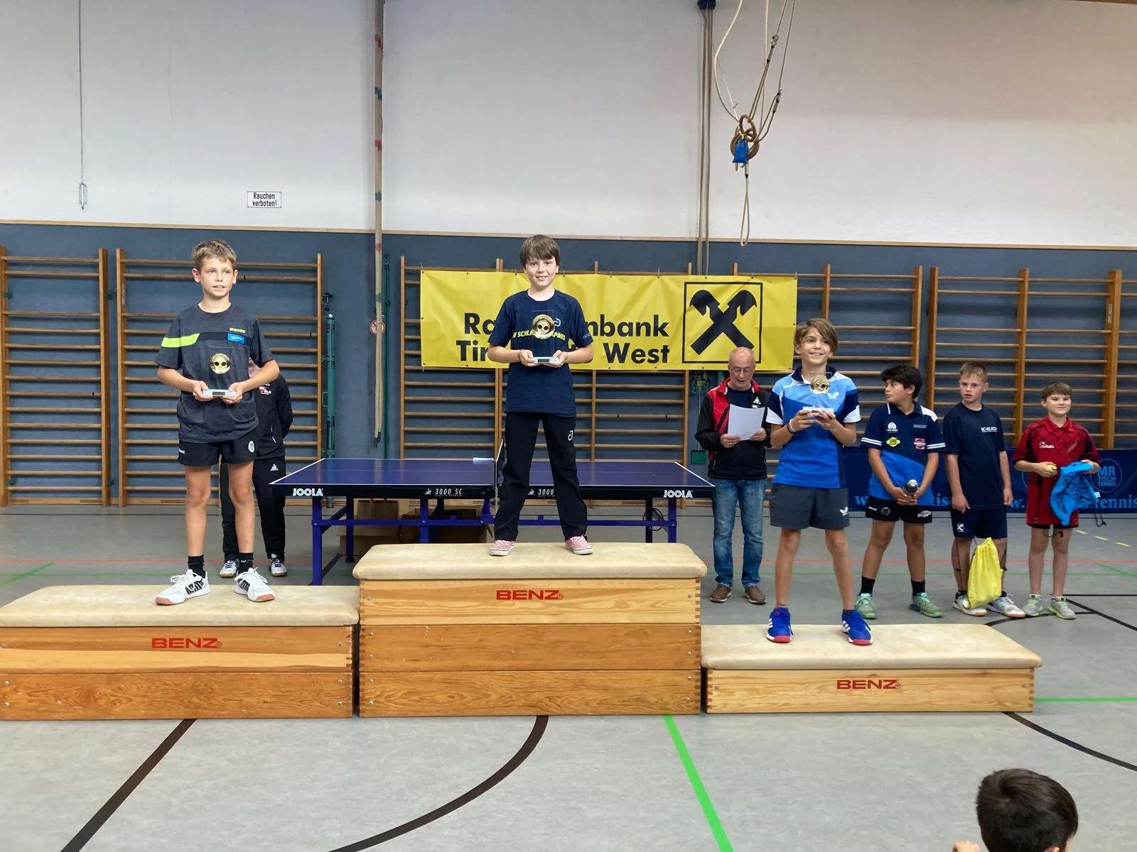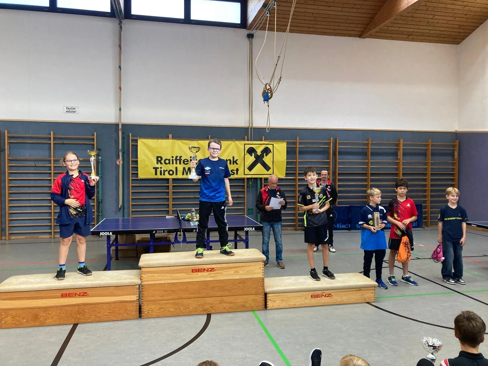 In der Gruppe A spielten die etwas erfahreneren Spieler; hier konnte Milan Joya vom TTC Rum den 3. Rang erreichen. Die Gruppe B wurde von Dominik Dierigl vom TTC Völs gewonnen. Der Sieg wurde ihm aber nicht geschenkt, er musste sich gewaltig anstrengen und gleich zweimal fünf Sätze spielen.